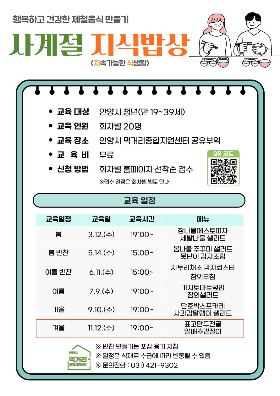 마지막 네번째 겨울 주제로 겨울의 식재료를 활용한 다양한 요리법을 알고 음식물쓰레기를 줄이는 방법에 대해 알아보는 시간입니다.