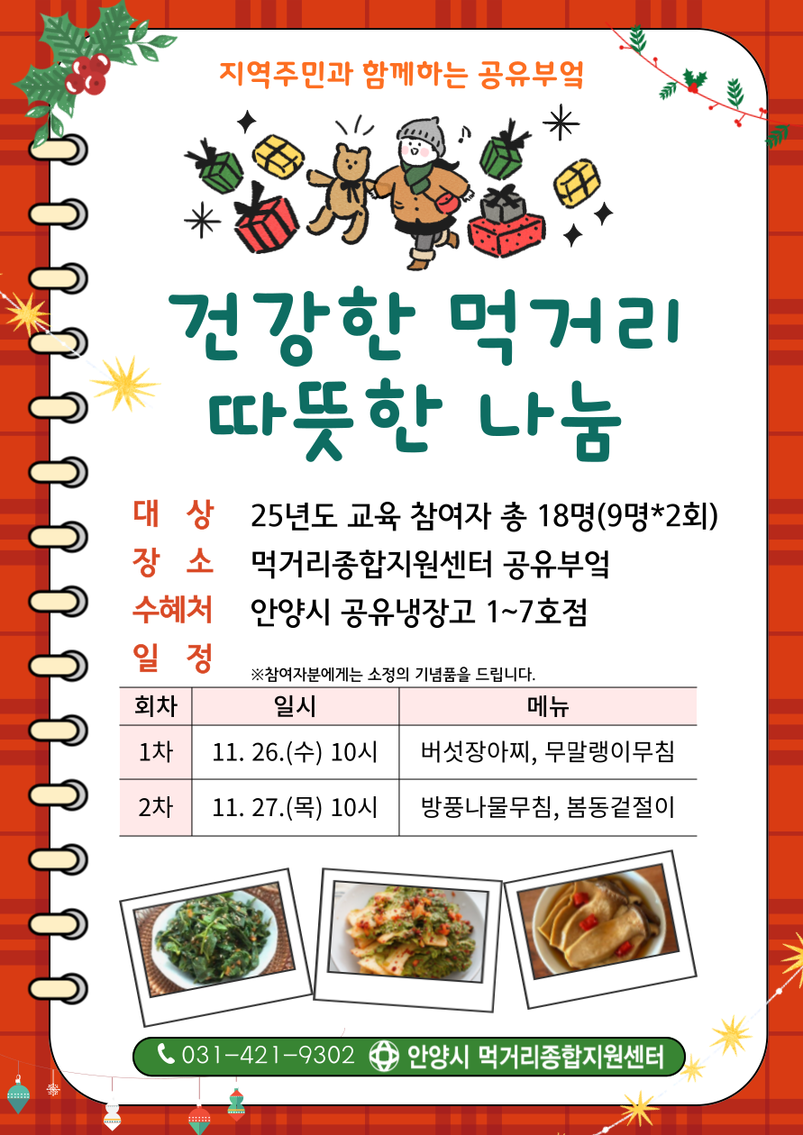 추운 겨울, 건강한 먹거리를 통해 따뜻한 나눔을 같이할 자원봉사자분을 모집합니다.